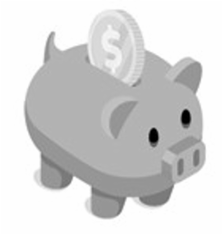 The mark consists of a stylized piggie bank with a coin in the slot.
