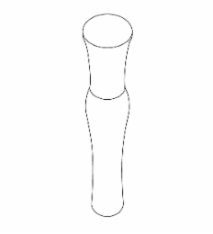 The mark consists of a three-dimensional configuration of cylindrical-shaped packaging for mascara comprising a stylized representation of a woman wearing a corset, with a wider circumference at the shoulders, hips and feet, and a rounded convex narrowing of the circumference at the stomach and knees.
