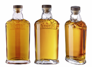 The mark consists of a three-dimensional configuration of a flattened oval-shaped bottle on which appears a rectangular banner design with the word "FINVARA" in stylized font. Connecting on either side of the banner is an interlocking vine design that extends around the back of the bottle and above the banner, and the word FINVARA appears in the neck of the bottle. Along the rear base of the bottle is a similar vine design. All of the wording and design(s) are etched and/or raised in the surface of the bottle. The bottle cap is not claimed as a feature of the mark.