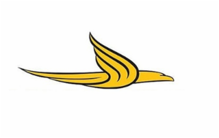 The mark consists of a stylized yellow bird shown in a side view in flight, with its body and wings extended horizontally. The bird is depicted in yellow with black outlining and black accent lines within the wings. The background is white and is not claimed as a feature of the mark.