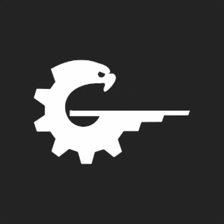 The mark consists of The mark consists of a partial mechanical gear with the head of a falcon on one end.