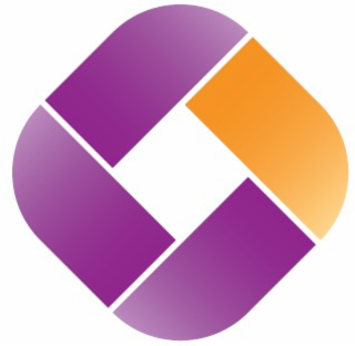 The mark consists of four elongated quadrilateral shapes arranged to form a tilted square with a diamond-shaped opening in the center. The shapes at the top, left, and bottom appear in shades of purple, and the shape at the right appears in shades of orange. The color white represents background and/or transparent areas and is not claimed as a feature of the mark.
