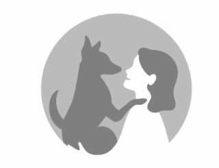 The mark consists of a stylized silhouette of a dog with one paw resting on the shoulder of a stylized person, both shown in profile facing each other, all enclosed within a circular background.