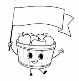 The mark consists of a cartoon image of a barrel of apples with eyes, eyebrows, a mouth, legs with feet and arms with hands holding a blank flag in the left hand.