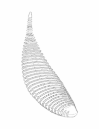 The mark consists of the three-dimensional configuration of a fishing lure having a central spine surrounded by a series of ovular fins extending outward from the central spine, with the ovular ribs increasing in size and then decreasing in size from one end to the other end.