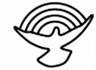 The mark consists of a bird with wings spread touching the ends of a rainbow over it.