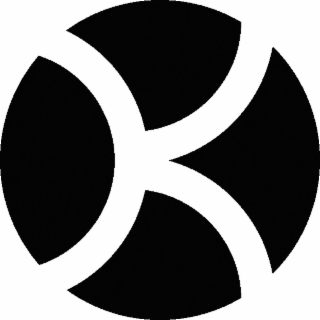 The mark consists of a solid circle divided up by a stylized letter K inside.