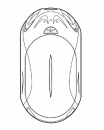 The mark consists of a stylized line-drawing of the top view of a handheld electric personal-care grooming device, namely a trimmer or shaver, having a rounded rectangular outer housing, symmetrical curved side contours, an upper control-area region with button detailing, and a centrally positioned elongated vertical slot in the lower portion of the device.
