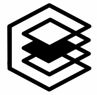 The mark consists of a geometric shape comprised of three vertically stacked parallel quadrilateral outlines, with the middle quadrilateral shaded in black, to the left of two additional smaller quadrilateral outlines, all contained within an outline of an incomplete polygon.