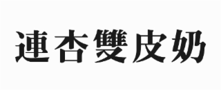 The Chinese characters in this mark transliterate to lianxing shuang pi nai and this means "connect", "apricot", "double", "skin", "milk", namely "Lianxing double-skin milk pudding" in English.