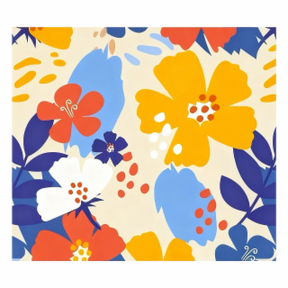 The mark consists of a two-dimensional, stylized floral pattern composed of multiple overlapping flowers, petals, and leaves arranged in a repeating decorative design. The flowers vary in size and shape and include rounded and scalloped petals with stylized centers formed by circular dot elements and curved stamen-like lines. The background includes irregular abstract shapes interspersed between the floral elements.