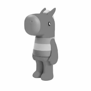 The mark consists of The mark consists of a stylized cartoon animal character standing upright. The character has a large rounded snout, two small ears, oval eyes, and simplified arms and legs. The body features horizontal bands across the torso.