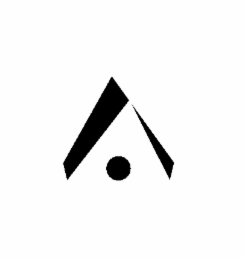 The mark consists of two angular, asymmetrical lines forming a peaked shape, with a solid circular dot centered below the lines.