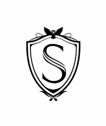 The mark consists of stylized shield design containing a large, single letter “S” in the center. At the top of the shield appears a small bird with outstretched wings. The bottom of the shield tapers to a point with a small ornamental flourish.
