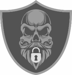 The mark consists of a shield shape with a skull that has a beard inside it, overlapping the skull is a lock.