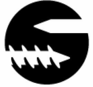 The mark consists of a bold, black circle encasing a nail head design facing towards the left and a screw head design facing the right.