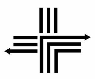 The mark consists of A stylized Greek cross, each line composed of three separate lines; the top and left lines are detached and the bottom and right lines are connected and form right angles; one line in each of the left side and right side ends with an arrow point.