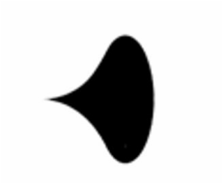 The mark consists of a solid, asymmetrical black shape with a curved outer edge and a tapered projection extending from one side.