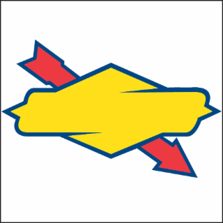 The mark consists of a yellow shaded diamond surrounded by a blue border with a red arrow with a blue border behind the diamond.