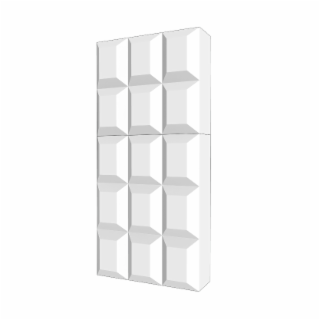 The mark consists of a three-dimensional configuration of the packaging for the goods in the form of a rectangular block with a grid of beveled rectangular panels on the front.