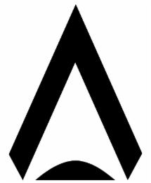 The mark consists of the design of the letter "A" consisting of a stylized geometric design formed by two thick, angular lines converging at a point to create an open triangular shape, with a curved segment positioned beneath the converging lines.