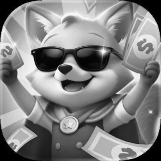 The mark consists of A laughing fox character wearing a cape, sunglasses, and a star medallion, holding up several dollar bills with more bills floating around; a lively background with radiant light rays.