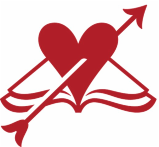 The mark consists of a red heart with a red arrow piercing the heart slightly right of the middle of the heart, with the heart and arrow appearing to be in the middle of an open book, which the pages of the book outlined in red.